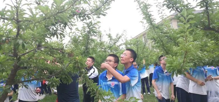 期间,元付宏校长亲自来到采摘现场,走入师生中间,和师生一同分享香甜的果实,一起分享丰收的喜悦,并真诚地祝福大家“桃李满园,胜利在望!”牛江茹主任、王庆阳主任、田钰强主任和李慧峰主任一起组织采摘活动,他们和学生忙成一片,一边谈笑一边采摘,帮助学生挑选好果,装果入袋,有效放松了学生紧张的应考情绪,笑语晏晏,其乐融融。